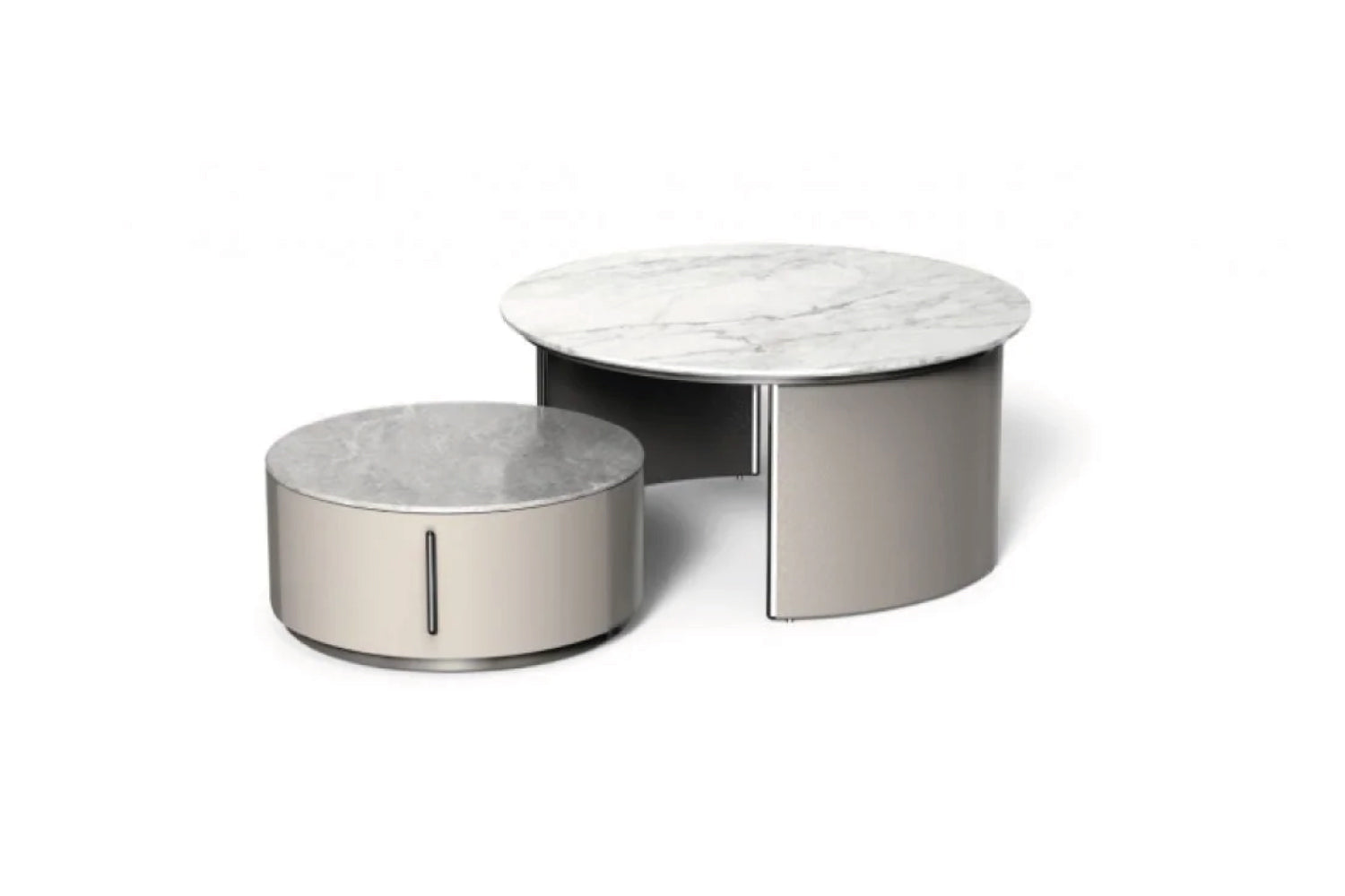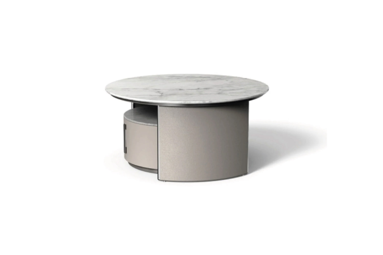 Innovative sintered stone pairs with MDF and metal in this design-forward coffee table. The material combination creates interesting textural contrasts and visual depth.