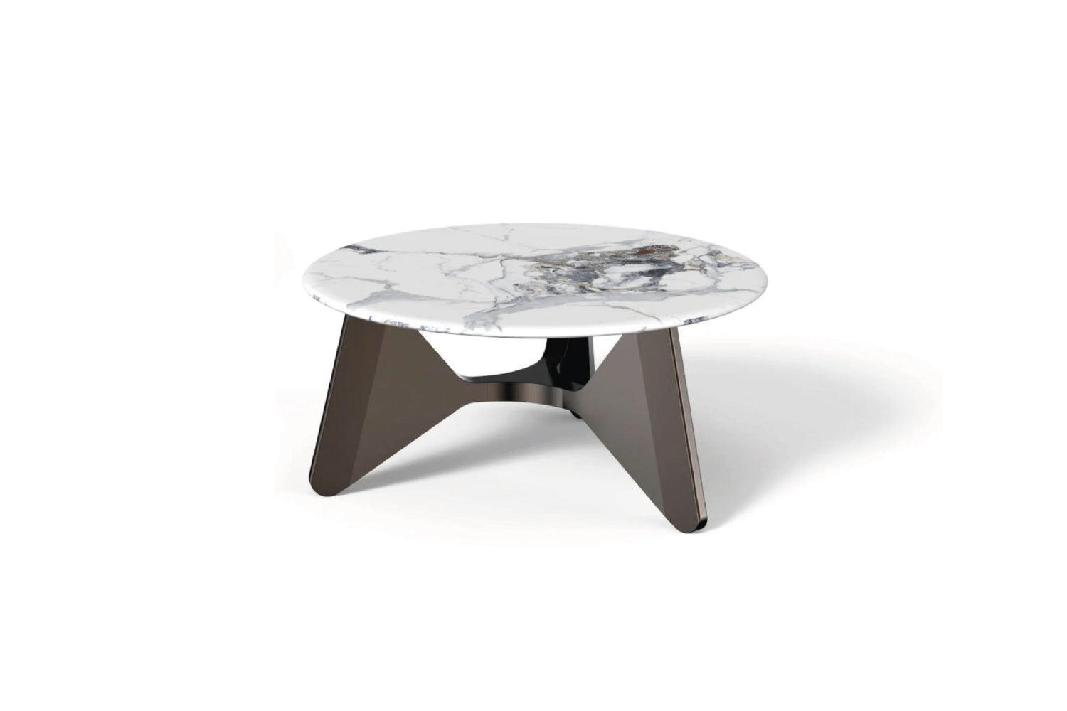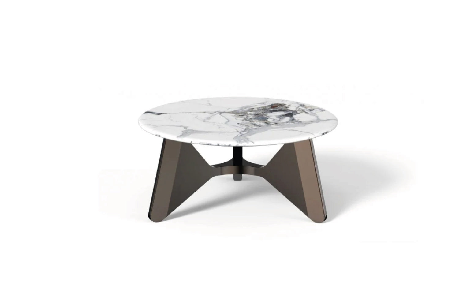 Classic marble graces this refined coffee table, its natural variations enhanced by the clean-lined metal base. A perfect balance of organic beauty and structured design.