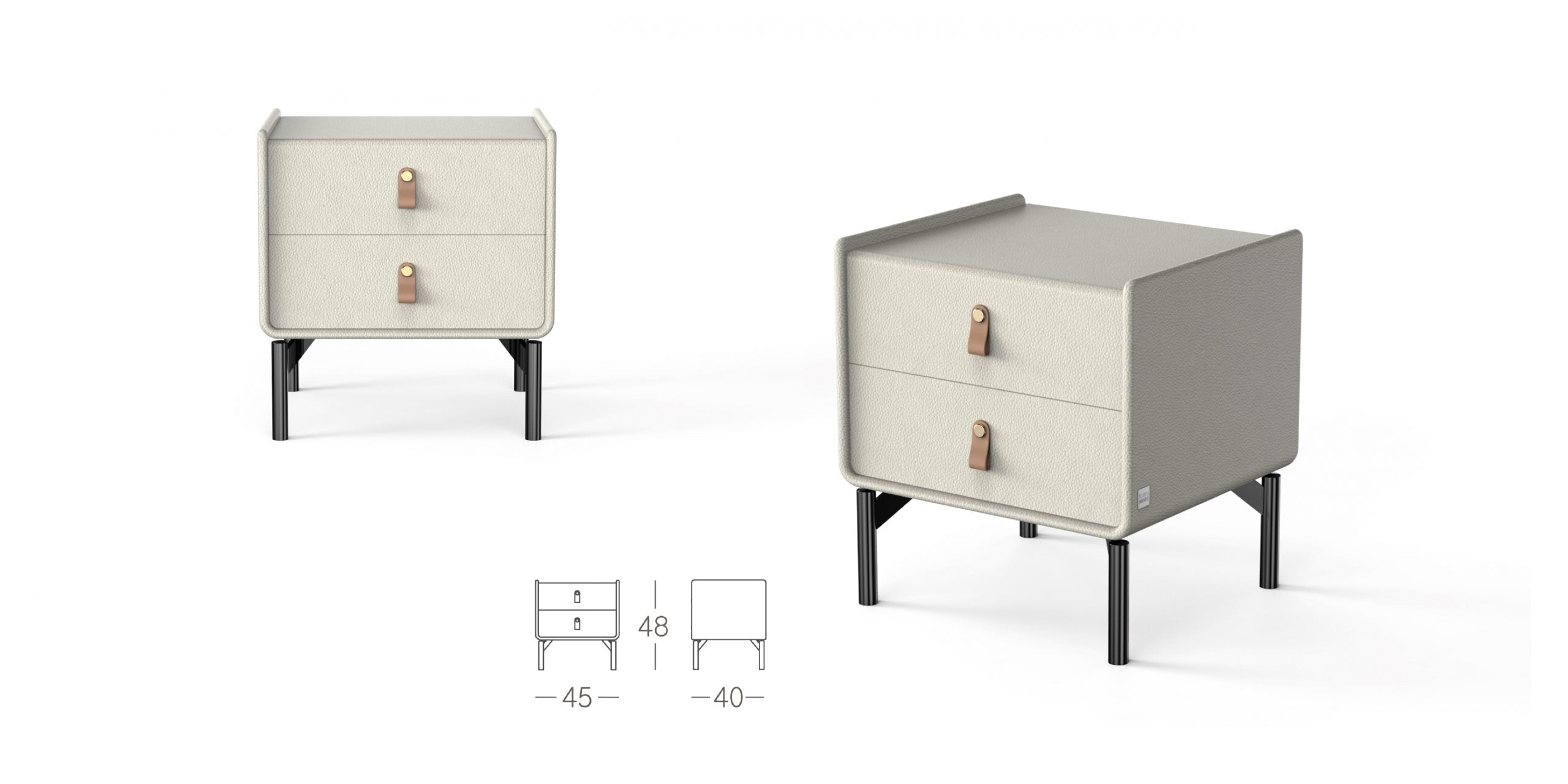Designed with attention to detail, this Bedside table features medium-density fiberboard wrapped in PVC leather with sophisticated metal touches, offering both style and functionality.