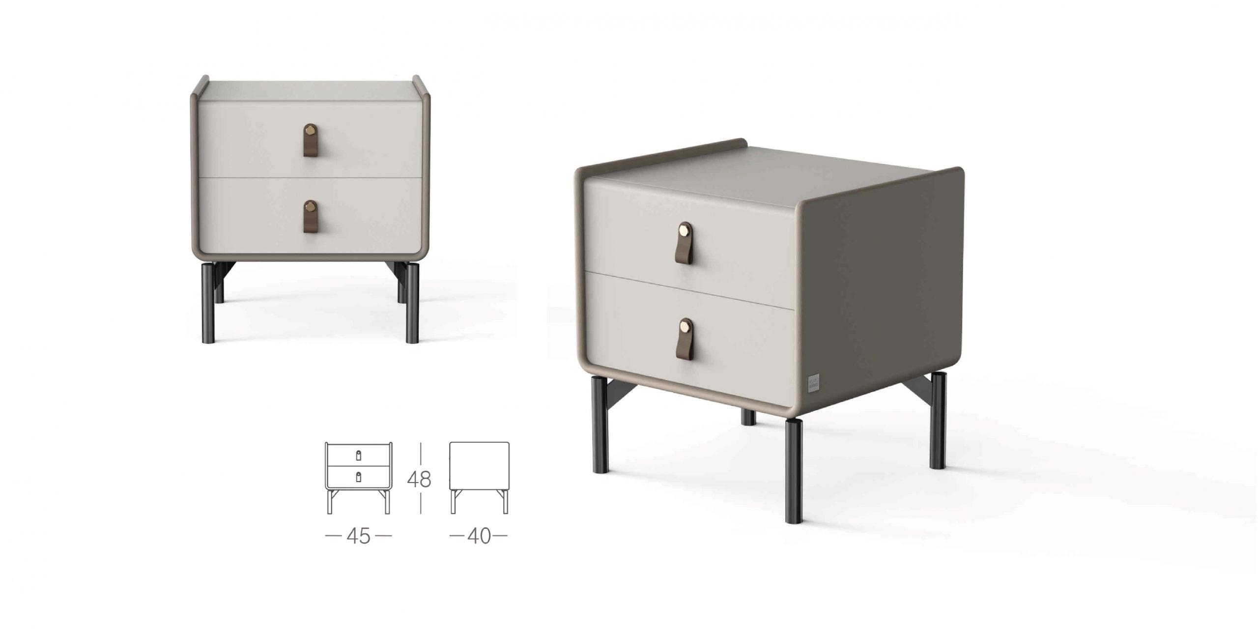 Designed with meticulous attention to detail, this bedside table blends medium-density fiberboard with PVC leather accents and a sturdy metal frame, creating a sophisticated storage piece for elegant interiors.