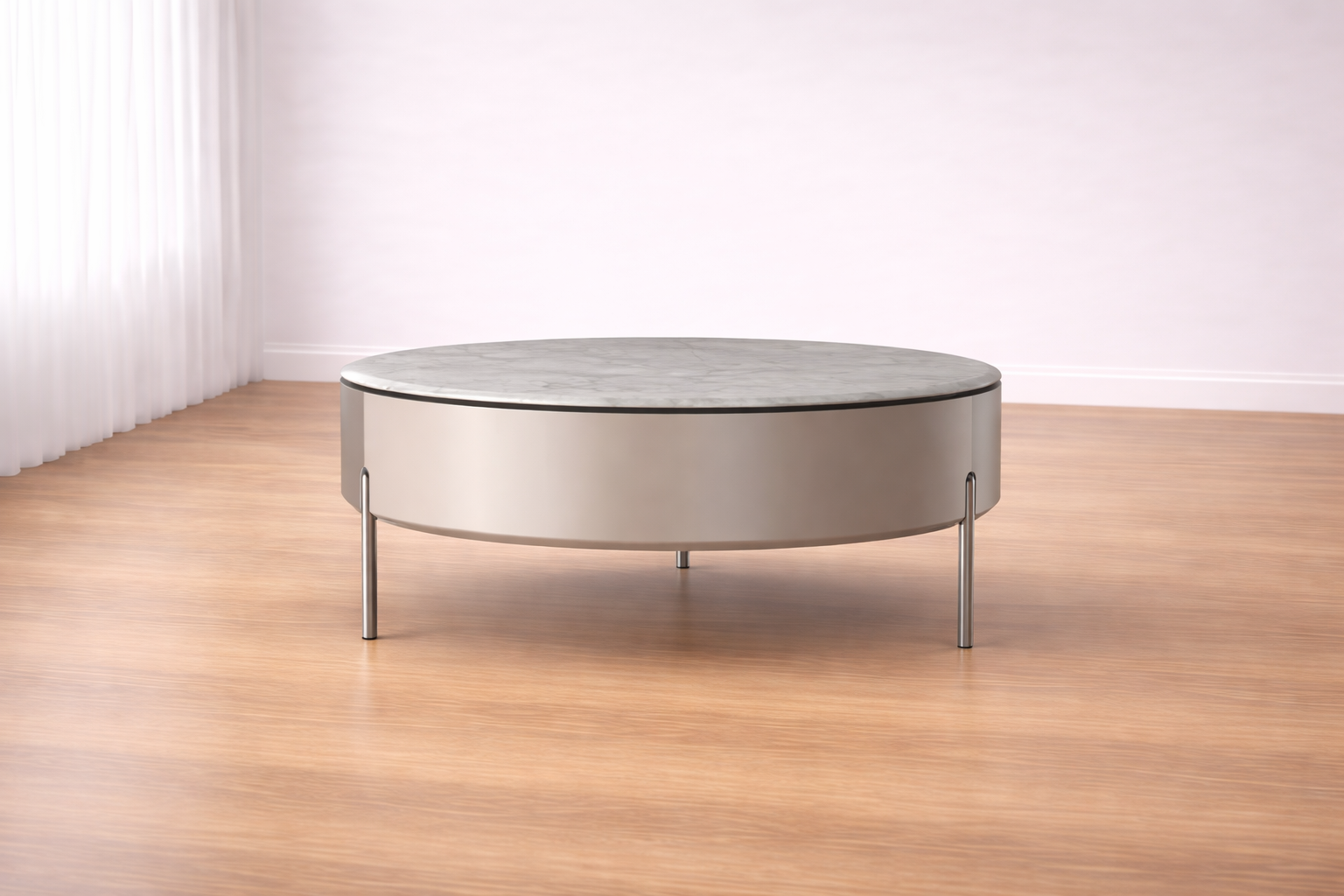 A statement marble-top coffee table with sleek metal legs. The natural stone veining adds organic sophistication, while the sturdy base ensures timeless durability.