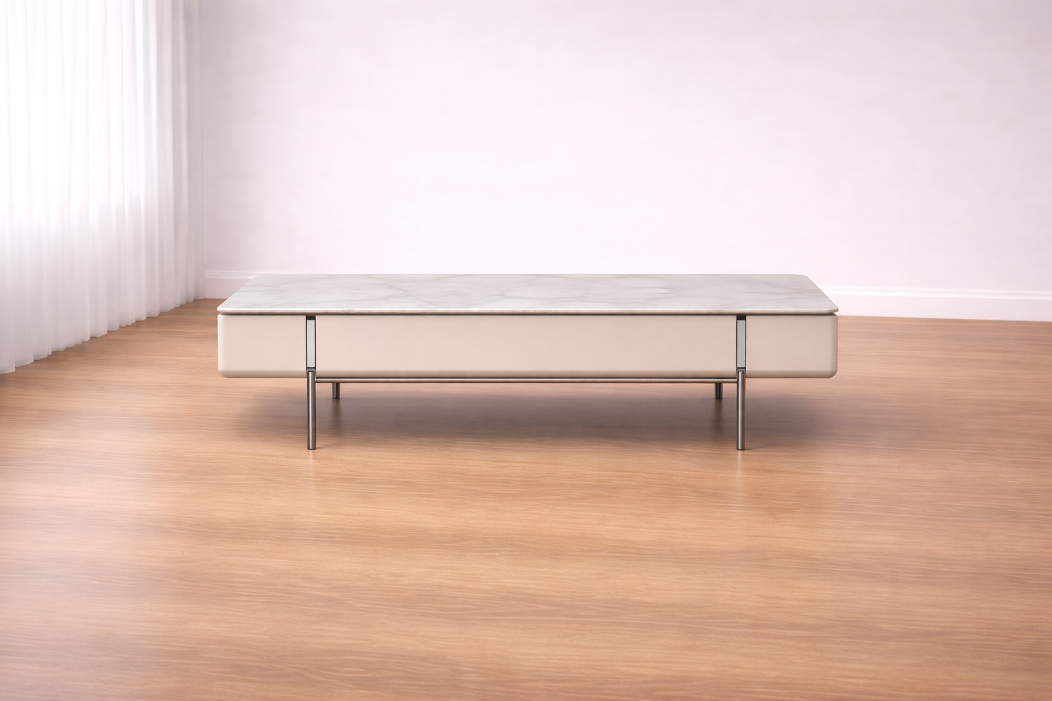 A stunning fusion of marble and metal, this elegant piece functions as both a coffee table and a center table. With its clean lines and premium finish, it exudes modern refinement—an essential addition to any upscale living space. Designed to balance beauty and durability, it serves as a timeless focal point in contemporary homes.