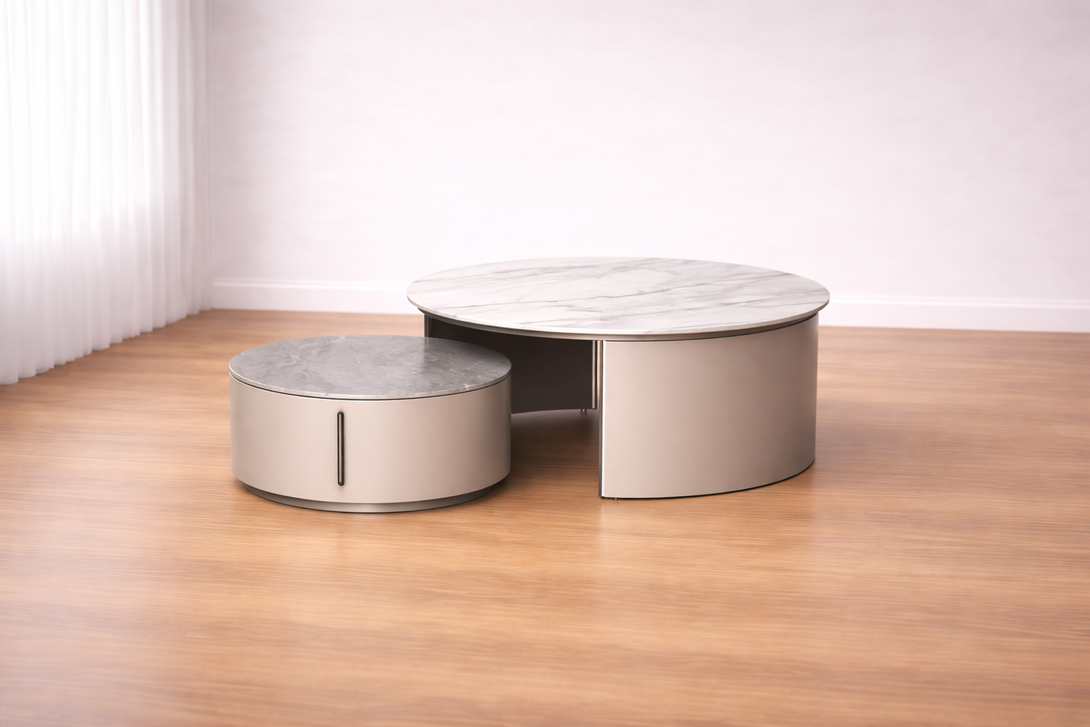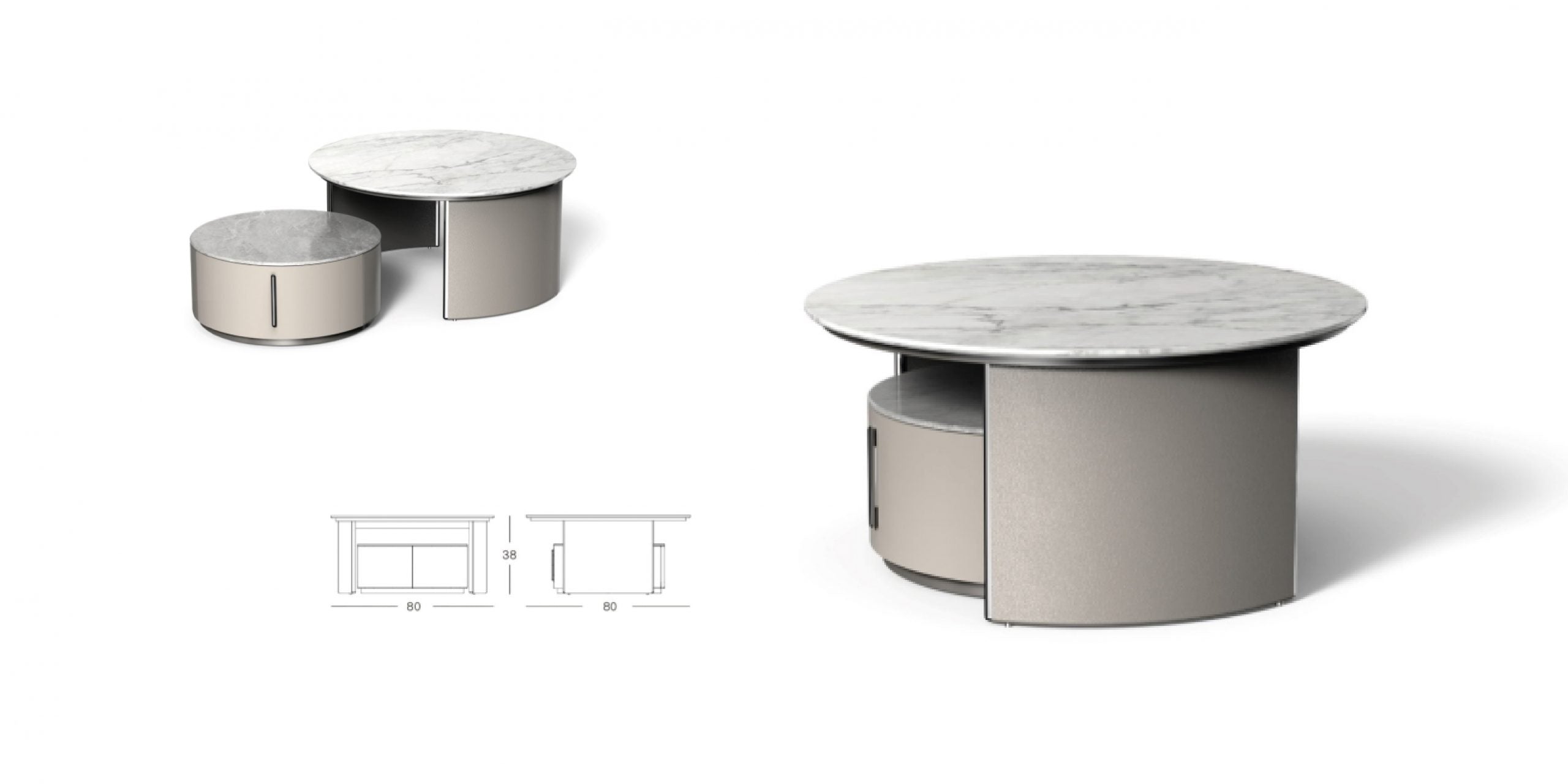 Innovative sintered stone pairs with MDF and metal in this design-forward coffee table. The material combination creates interesting textural contrasts and visual depth.