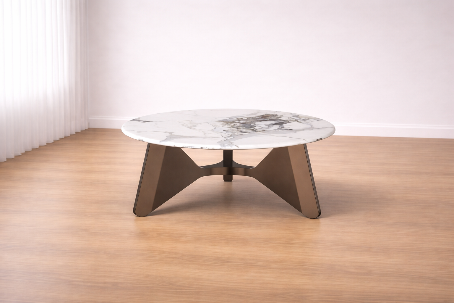 Classic marble graces this refined coffee table, its natural variations enhanced by the clean-lined metal base. A perfect balance of organic beauty and structured design.